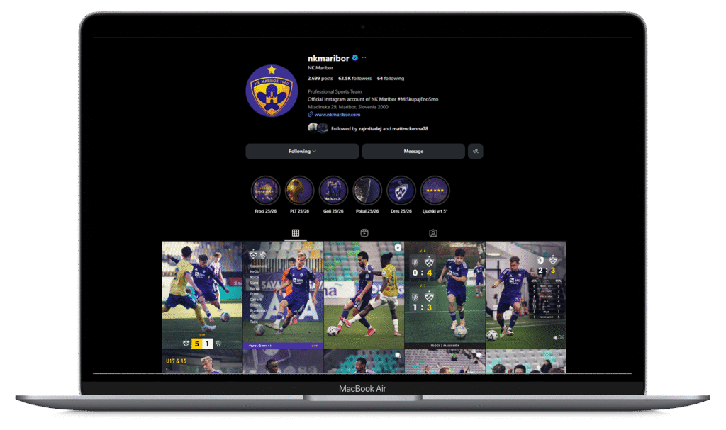 Skrbimo za vizualno identiteto vijoličastih. Z modernim grafičnim oblikovanjem in aktivnim upravljanjem družbenih omrežij zagotavljamo, da je komunikacija NK Maribor vedno vizualno dovršena, atraktivna in v stiku z navijači.
